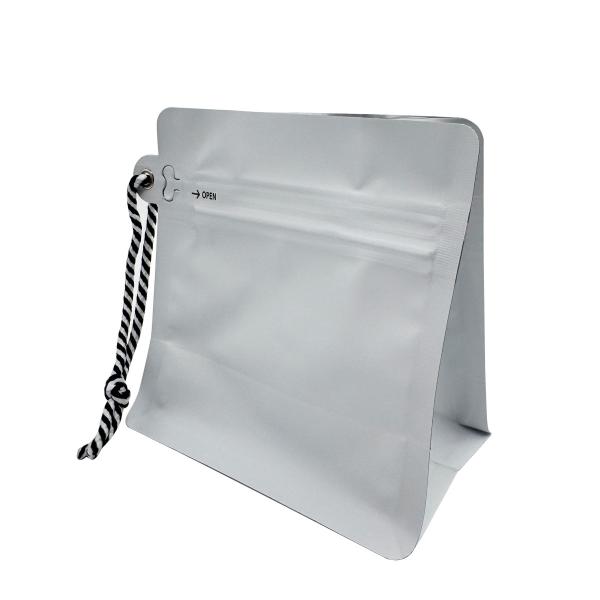 250g 0.5lb 8oz Matte White Foil Flat Bottom Pouch Square Shape Coffee Packaging Bags with Valve, Side Zipper and String